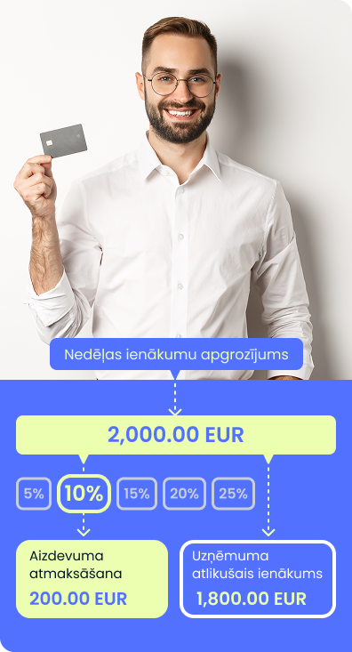 Jūs izvēlaties, cik lielu % daļu no uzņēmuma iknedēļas ienākumiem vēlaties novirzīt kredīta apmaksai.